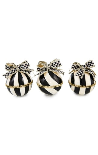 MC CC NOEL STRIPE CAPIZ BALL ORNAMENTS, SET OF 3