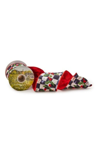 MC COZY CHRISTMAS HOLLY EMBROIDERED 4" RIBBON