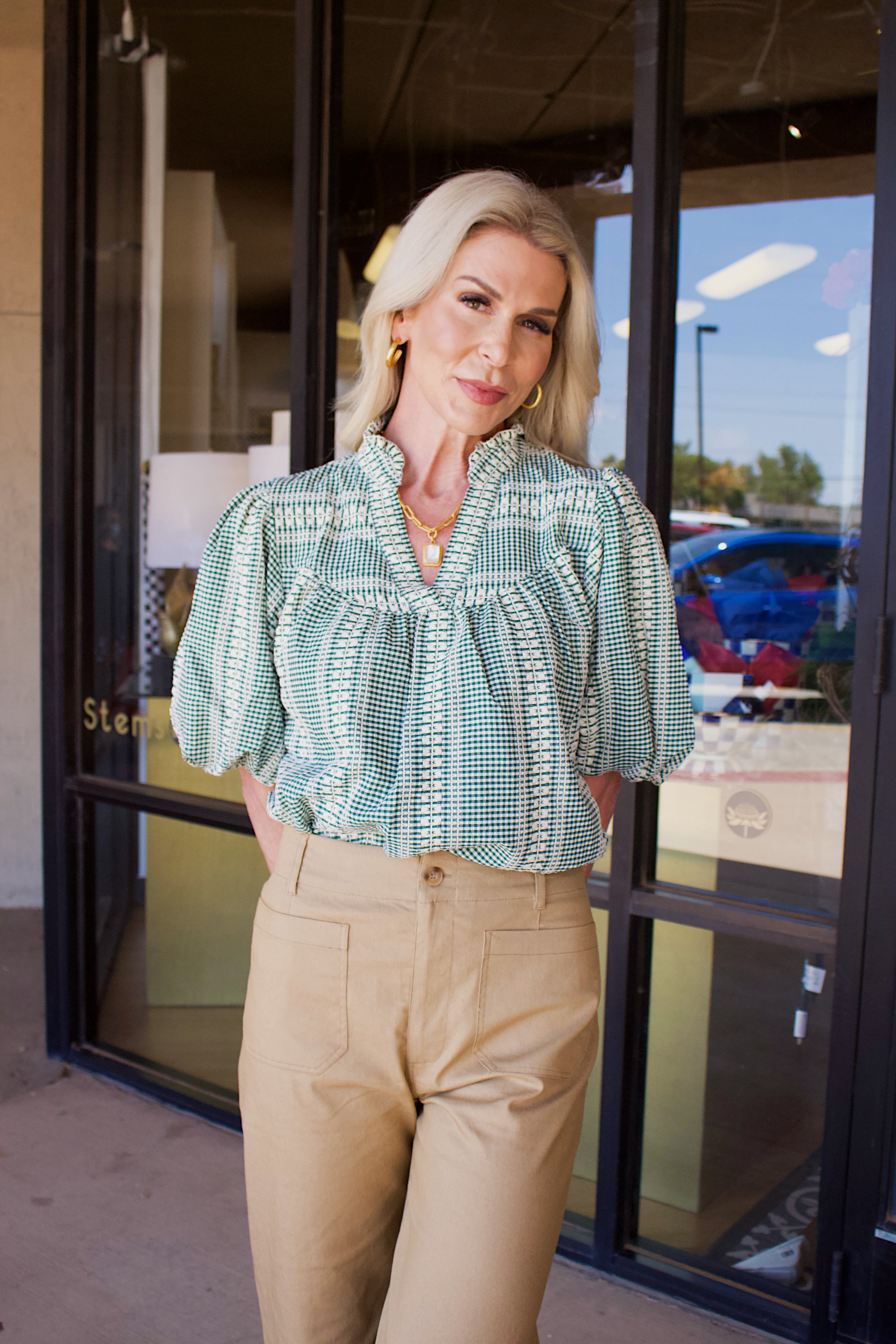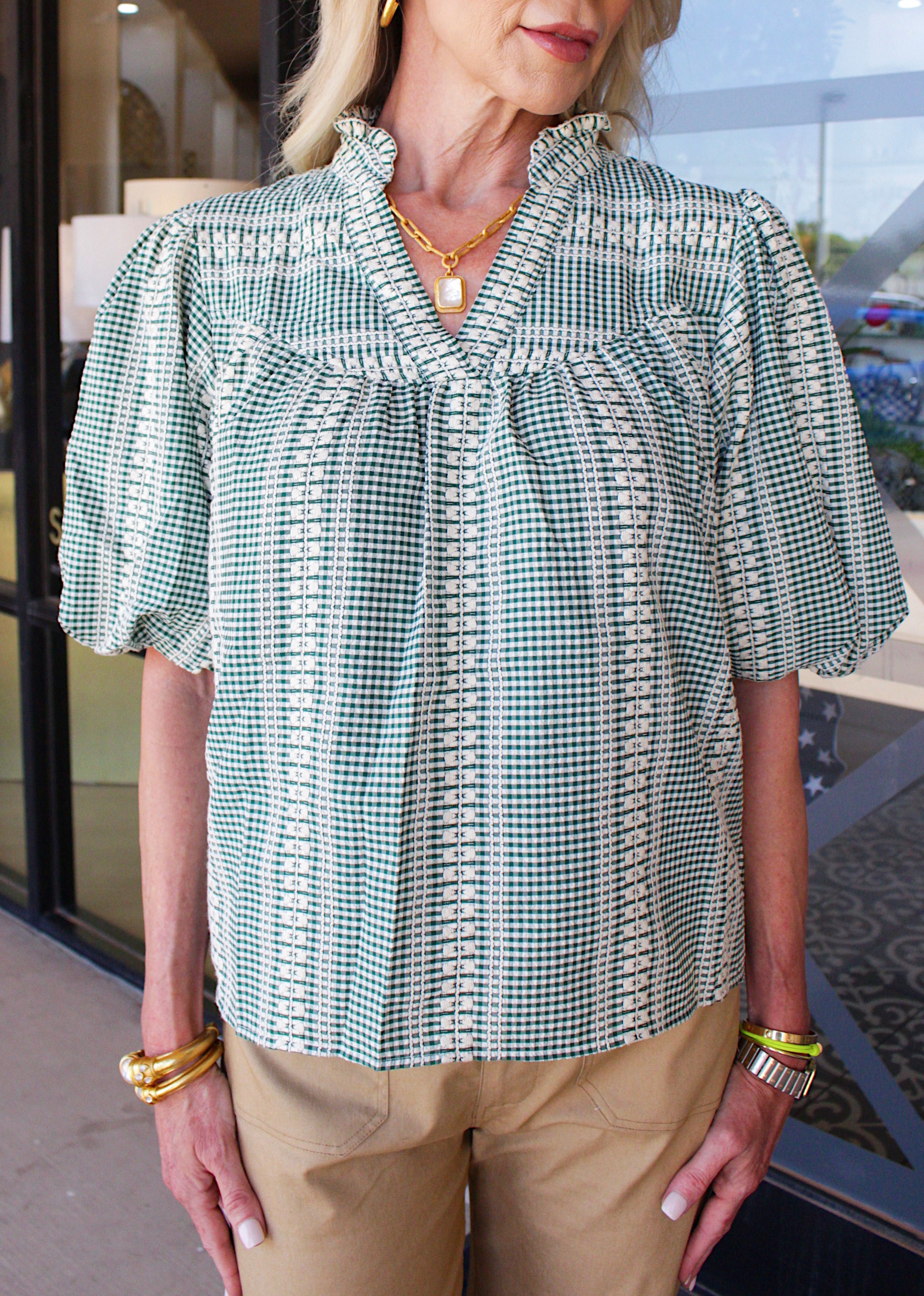 PUFF SLEEVE GINGHAM TOP