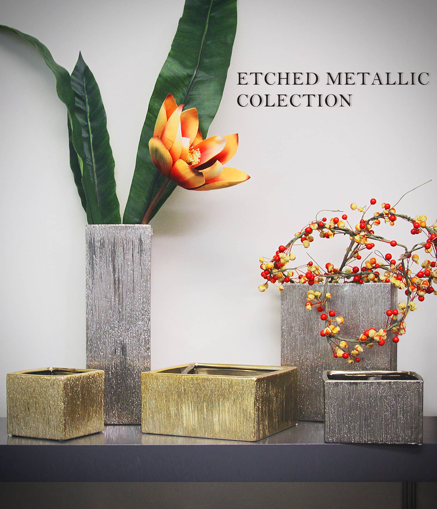 Etched Metallic Collection | Ceramic Orchid Pot, Etched Gold