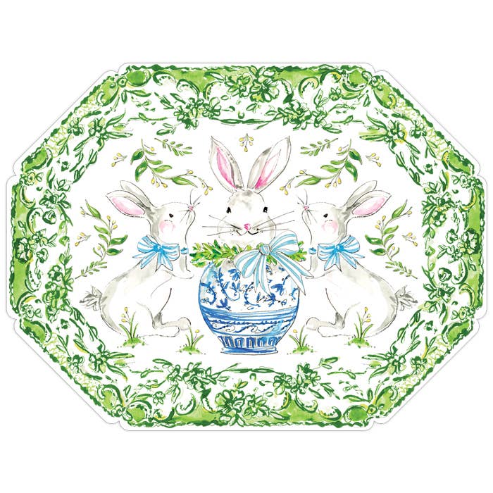 Handpainted Bunny in Chinoiserie Pot Posh Die-Cut Placemat