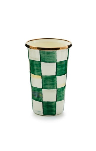 Heavy-gauge, hand-glazed steel underbody with hand-painted Emerald Checks, rimmed in bronzed stainless steel. Pieces may vary due to the handmade nature of each product. Imported.