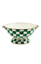 Heavy-gauge, hand-glazed steel underbody with hand-painted Emerald Checks, rimmed in bronzed stainless steel. Antiqued brass-finished handles. Pieces may vary due to the handmade nature of each product. Imported.