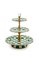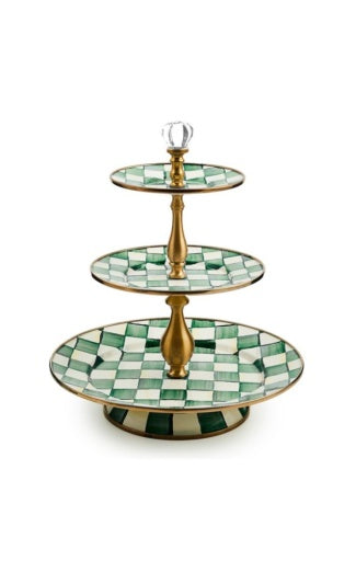 Heavy-gauge, hand-glazed steel underbody with hand-painted Emerald Checks, rimmed in bronzed stainless steel. Topped with a glass knob and brass hardware. Pieces may vary due to the handmade nature of each product. Imported.