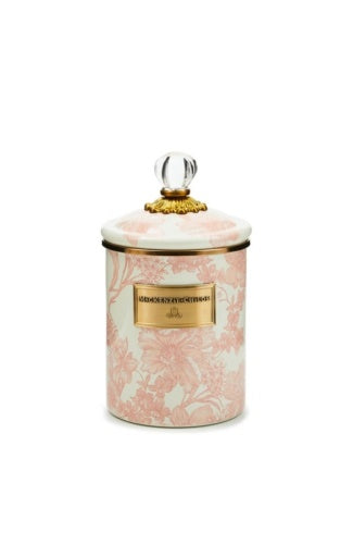 Heavy-gauge, hand-glazed steel underbody embellished with hand-applied transfers, rimmed in bronzed stainless steel. Lid is topped with a glass finial. Silicone seal inside lid. Pieces may vary due to the handmade nature of each product. Imported.