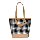 A simple yet classy looking small tote or large purse with a handy outside pocket for a cell phone, keys, or other often-used items. Also includes four open and one zippered inside pockets.