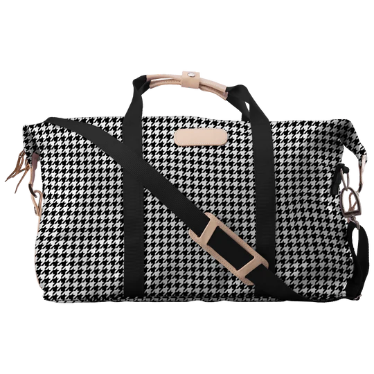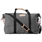 Our Weekender bag is perfect for short weekend trips. The Weekender features interior open pockets and a small exterior zippered pocket. Versatile snaps on the side allow your Weekender to be longer and narrower or shorter and wider. Comes with detachable shoulder strap and leather handles.