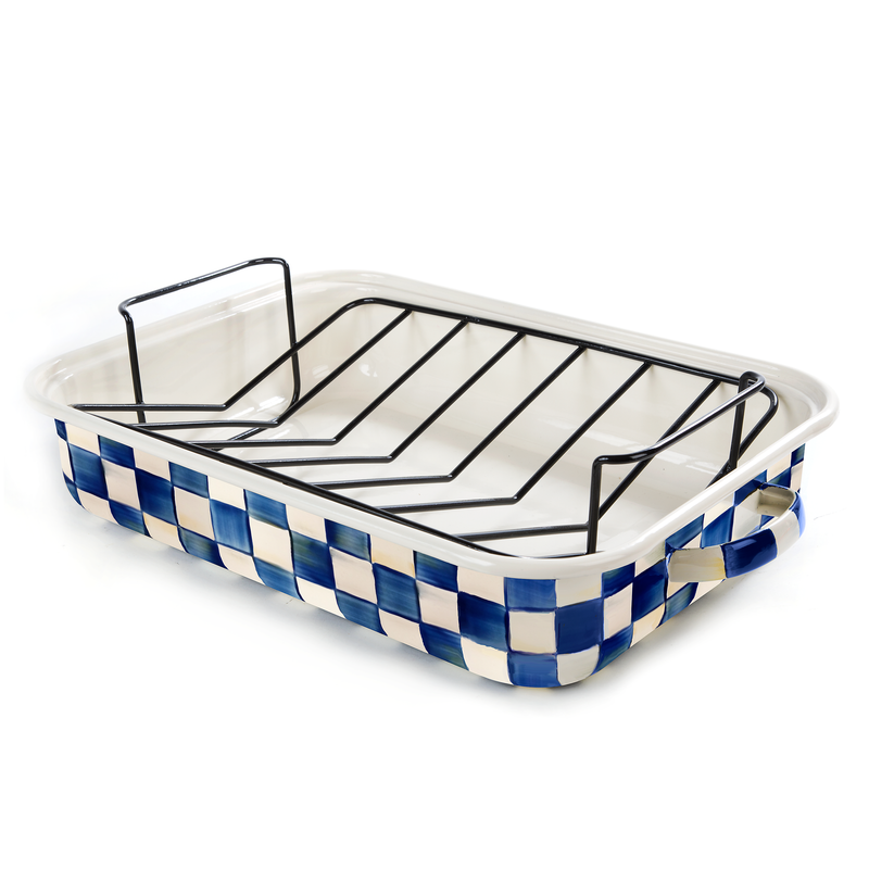 MC RC ENAMEL & RATTAN ROUND SERVING TRAY