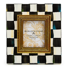 Heavy-gauge, hand-glazed steel underbody with hand-painted Courtly Checks. glass pane. Easel back included; backing is covered with black linen and a brass logo plate. Pieces may vary due to the handmade nature of each product. Imported.