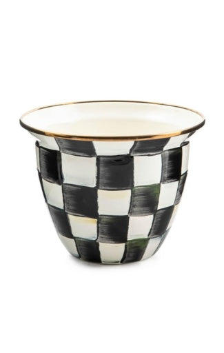 Heavy-gauge, hand-glazed steel underbody with hand-painted Courtly Checks, rimmed in bronzed stainless steel. Pieces may vary due to the handmade nature of each product. Imported.