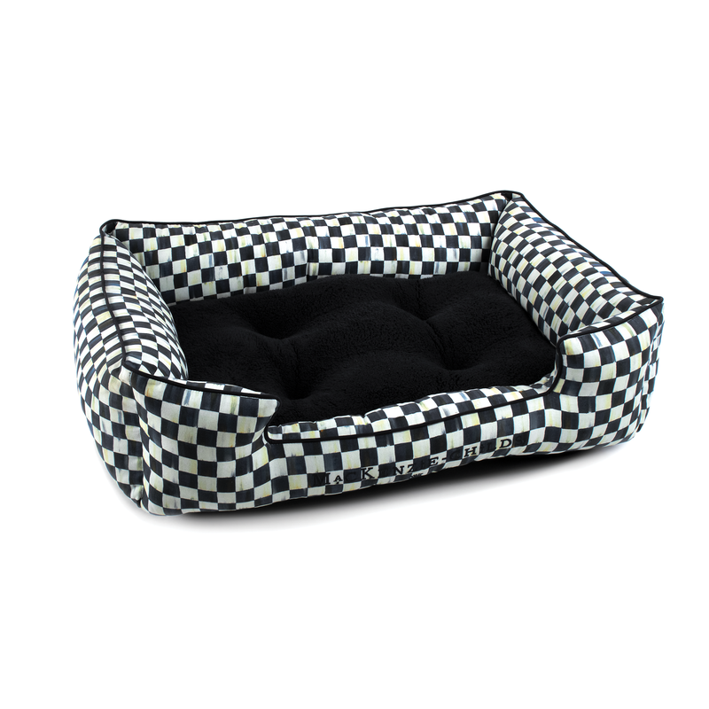 Courtly Check printed cotton fabric, with 100% polyester inside top. 100% polyester fiber fill. Pieces may vary due to the handmade nature of each product. Imported.