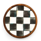 Acacia wood base with hand-glazed, and hand-painted Courtly Check plate. Pieces may vary due to the handmade nature of each product. Imported.