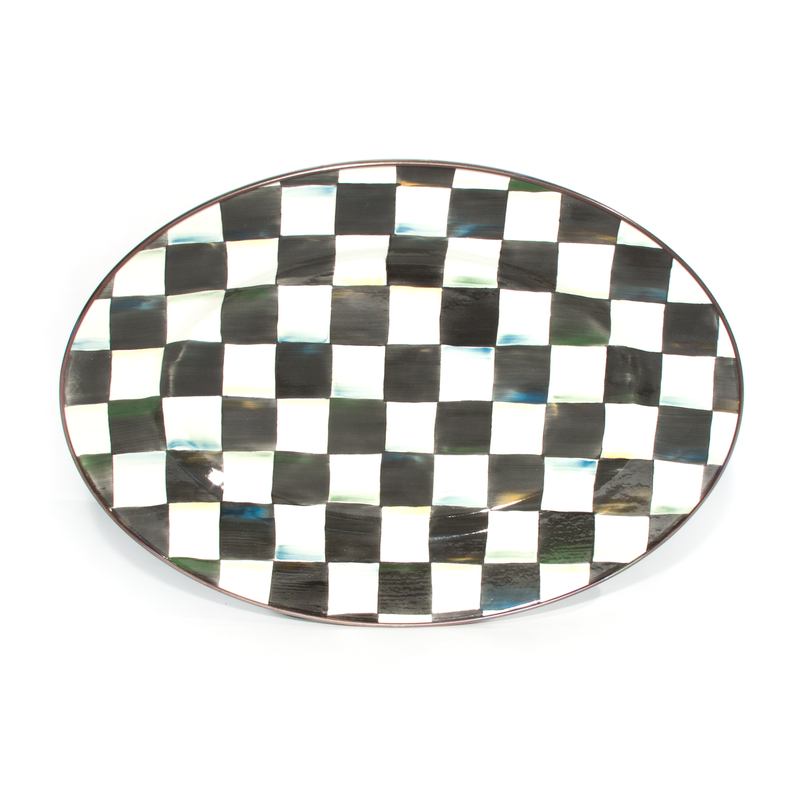 Heavy-gauge, hand-glazed steel underbody with hand-painted Courtly Checks, rimmed in bronzed stainless steel. Pieces may vary due to the handmade nature of each product. Imported.