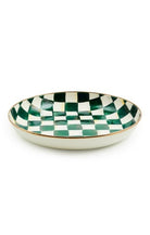 Heavy-gauge, hand-glazed steel underbody with hand-painted Emerald Checks, rimmed in bronzed stainless steel. Pieces may vary due to the handmade nature of each product. Imported.