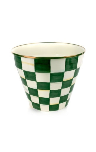 Heavy-gauge, hand-glazed steel underbody with hand-painted Emerald Checks, rimmed in bronzed stainless steel. Pieces may vary due to the handmade nature of each product. Imported.
