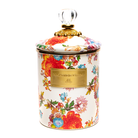 Heavy-gauge, hand-glazed steel underbody embellished with hand-applied floral transfers, rimmed in bronzed stainless steel. Lid is topped with a glass finial. Silicone seal inside lid. Pieces may vary due to the handmade nature of each product. Imported.