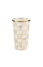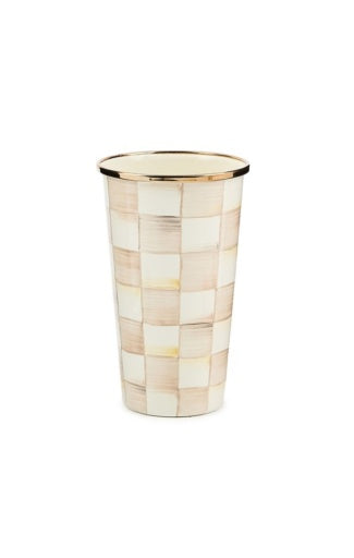 Heavy-gauge, hand-glazed steel underbody with hand-painted Mocha Checks, rimmed in bronzed stainless steel. Pieces may vary due to the handmade nature of each product. Imported.