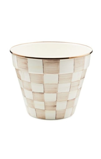 Heavy-gauge, hand-glazed steel underbody with hand-painted Mocha Checks, rimmed in bronzed stainless steel. Pieces may vary due to the handmade nature of each product. Imported.