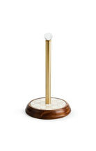Acacia wood base with hand glazed and hand-painted Mocha Check plate, stainless steel center post and glass knob. Pieces may vary due to the handmade nature of each product. Imported.