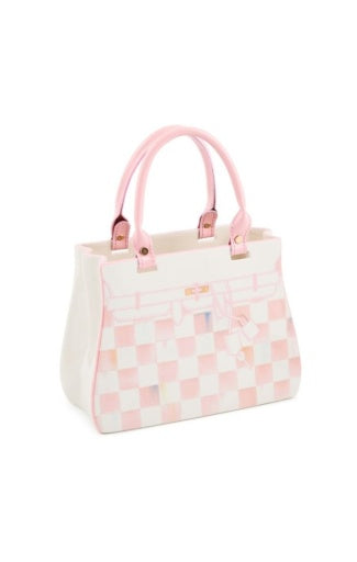 Ceramic with decal and water resistant patent leather straps. Pieces may vary due to the handmade nature of each product. Imported.