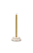 Heavy-gauge hand-glazed steel underbody with hand-painted Rosy Check base, stainless steel center post and glass knob. Pieces may vary due to the handmade nature of each product. Imported.