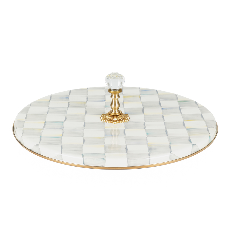Heavy-gauge, hand-glazed steel underbody with hand-painted Sterling Checks, rimmed in bronzed stainless steel. Antiqued brass plated accents. Pieces may vary due to the handmade nature of each product. Imported.