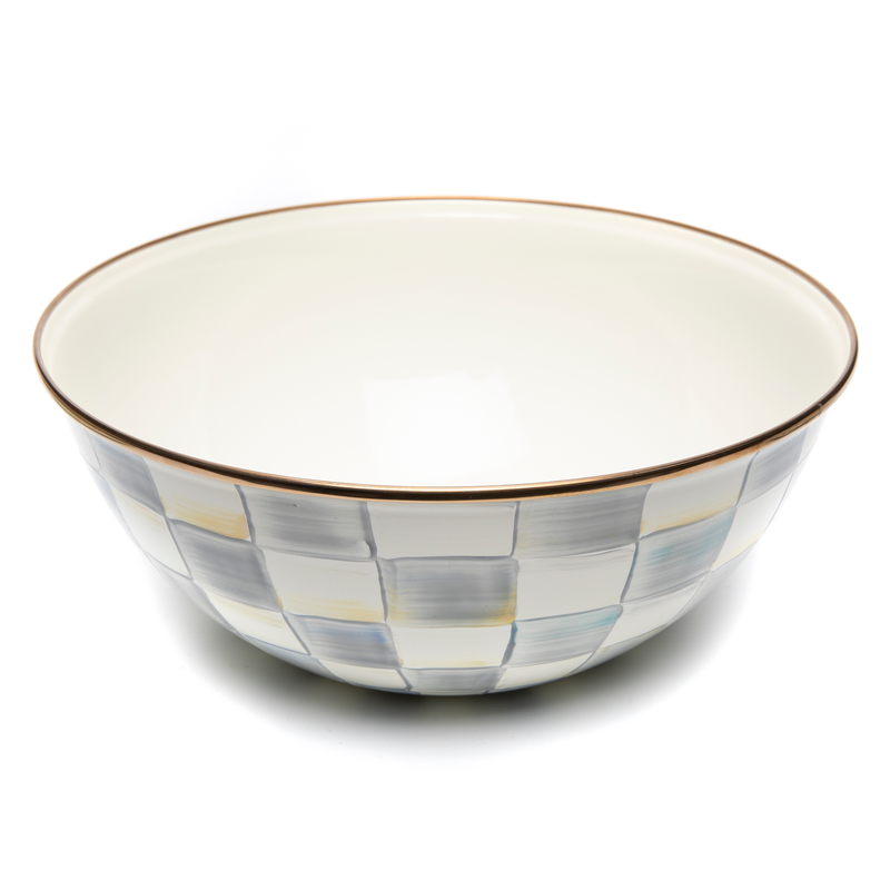 Heavy-gauge, hand-glazed steel underbody with hand-painted Sterling Checks, rimmed in bronzed stainless steel. Pieces may vary due to the handmade nature of each product. Imported.