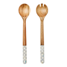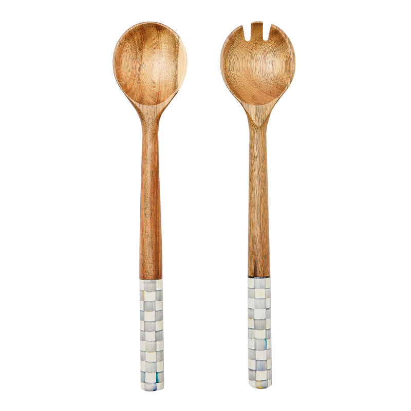 Acacia wood with heavy-gauge steel handle with hand-painted Sterling Check decoration. Pieces may vary due to the handmade nature of each product. Imported.