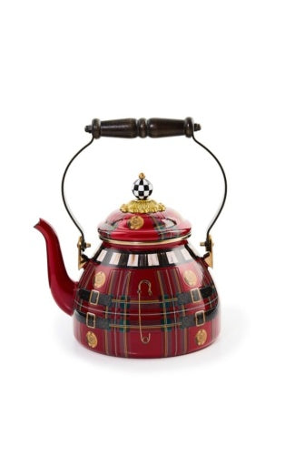Heavy-gauge, hand-glazed steel underbody embellished with hand-applied transfers, rimmed in bronzed stainless steel. Wood handle. Lid is topped with a resin finial. Pieces may vary due to the handmade nature of each product. Imported.