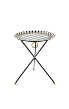 Collapsable iron frame with hand-painted checks. Pieces may vary due to the handmade nature of each product. Imported.