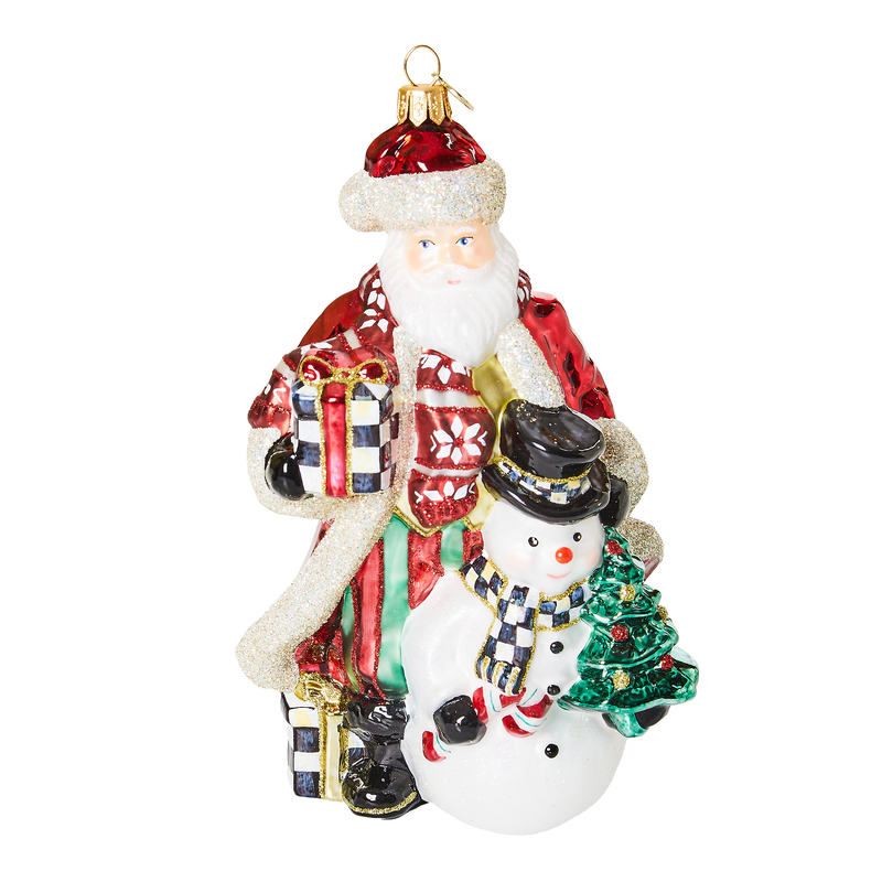 MC SANTA AND SNOWMAN GLASS ORNAMENT