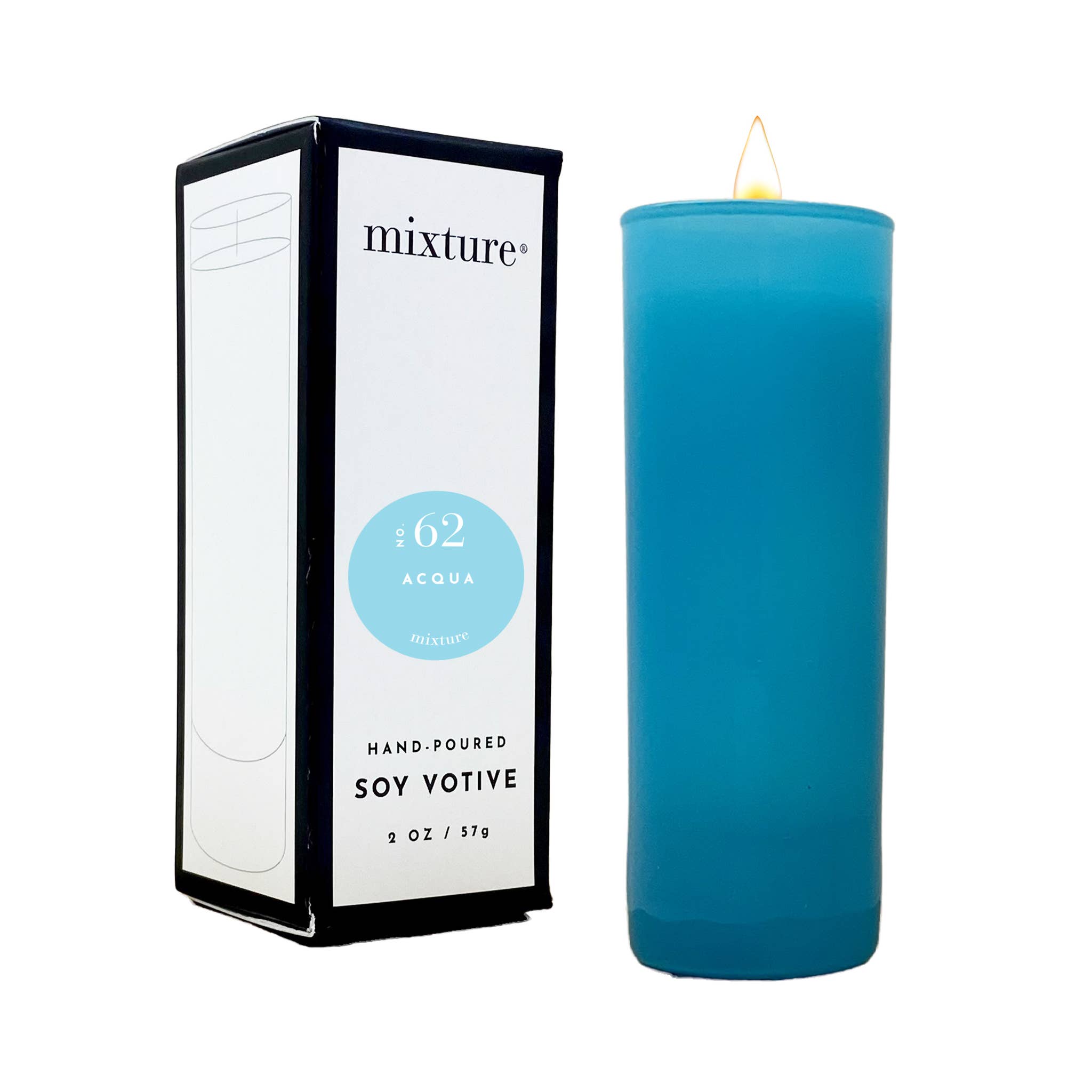 Our thought was simple. Provide a cylinder votive like no other. This 2oz votive is fabulous lined up on a mantel, in a bathroom or on a dining room table. One votive will burn for approximately 20 hours.