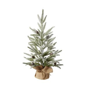 24.75" SNOWY TREE WITH PINECONES IN BURLAP BAG
