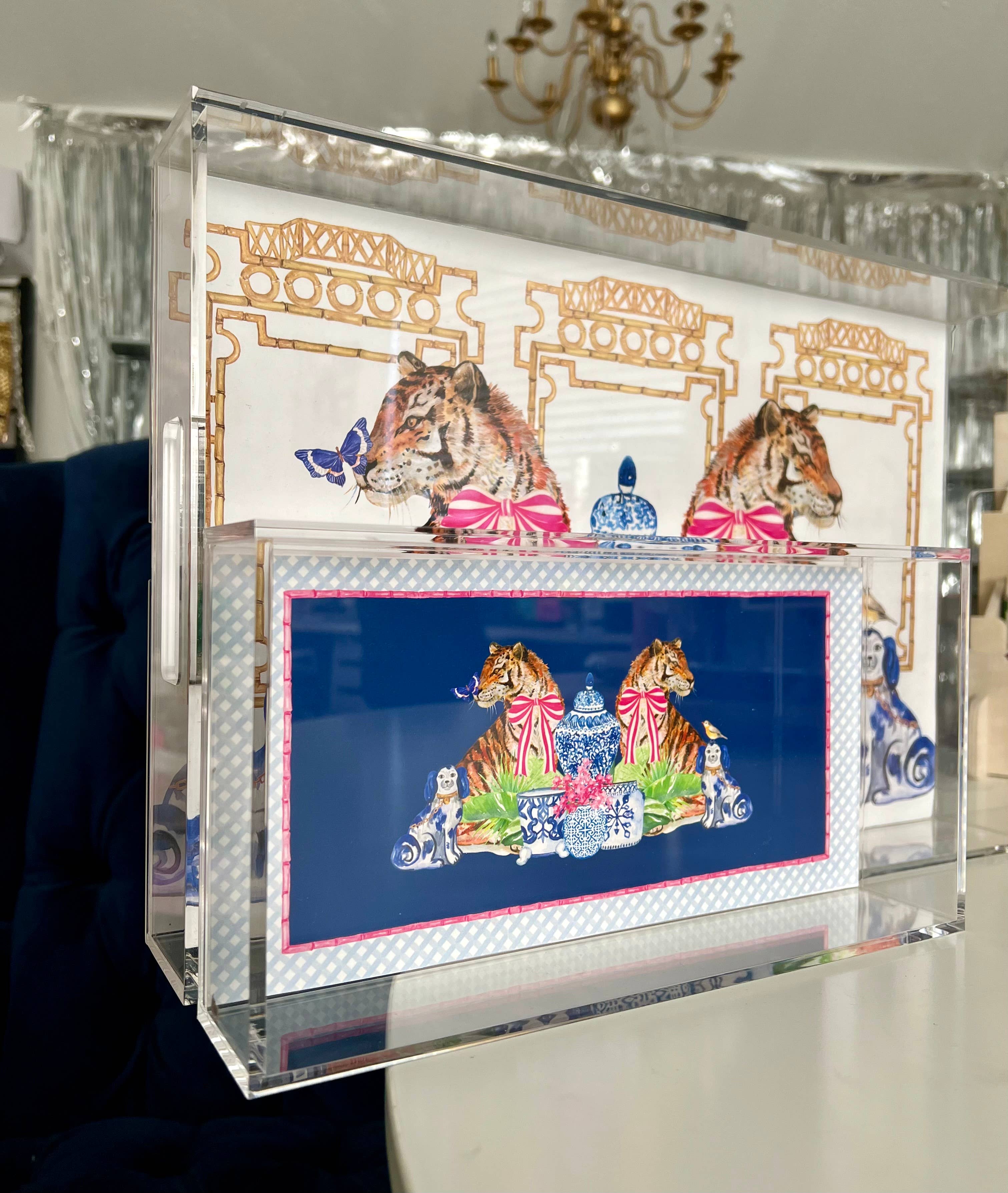 **The TAYLOR GRAY acrylic TRINKET TRAY is a 11x5.5 tray that perfectly fit our TRINKET insert designs. The patent pending pocket on the bottom of the tray allows the inserts to be easily interchanged and protected. Acrylic trays are all the rage and are definitely on trend. Why should you settle for one design when you can have FIVE designs and change them out on a whim?