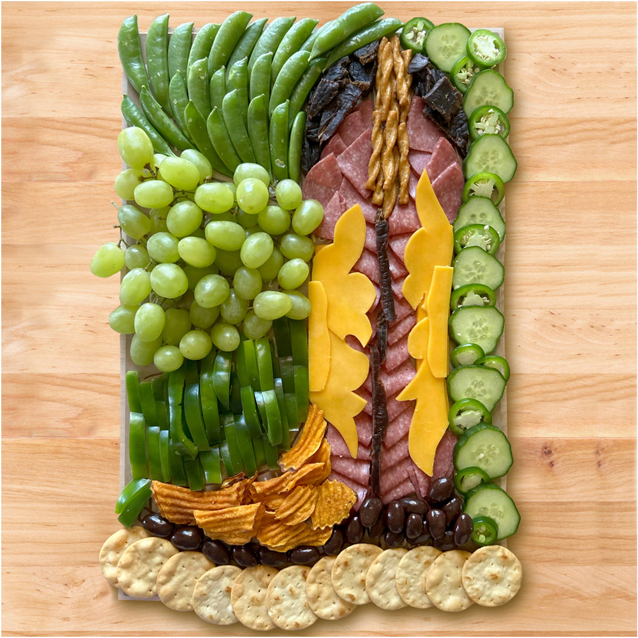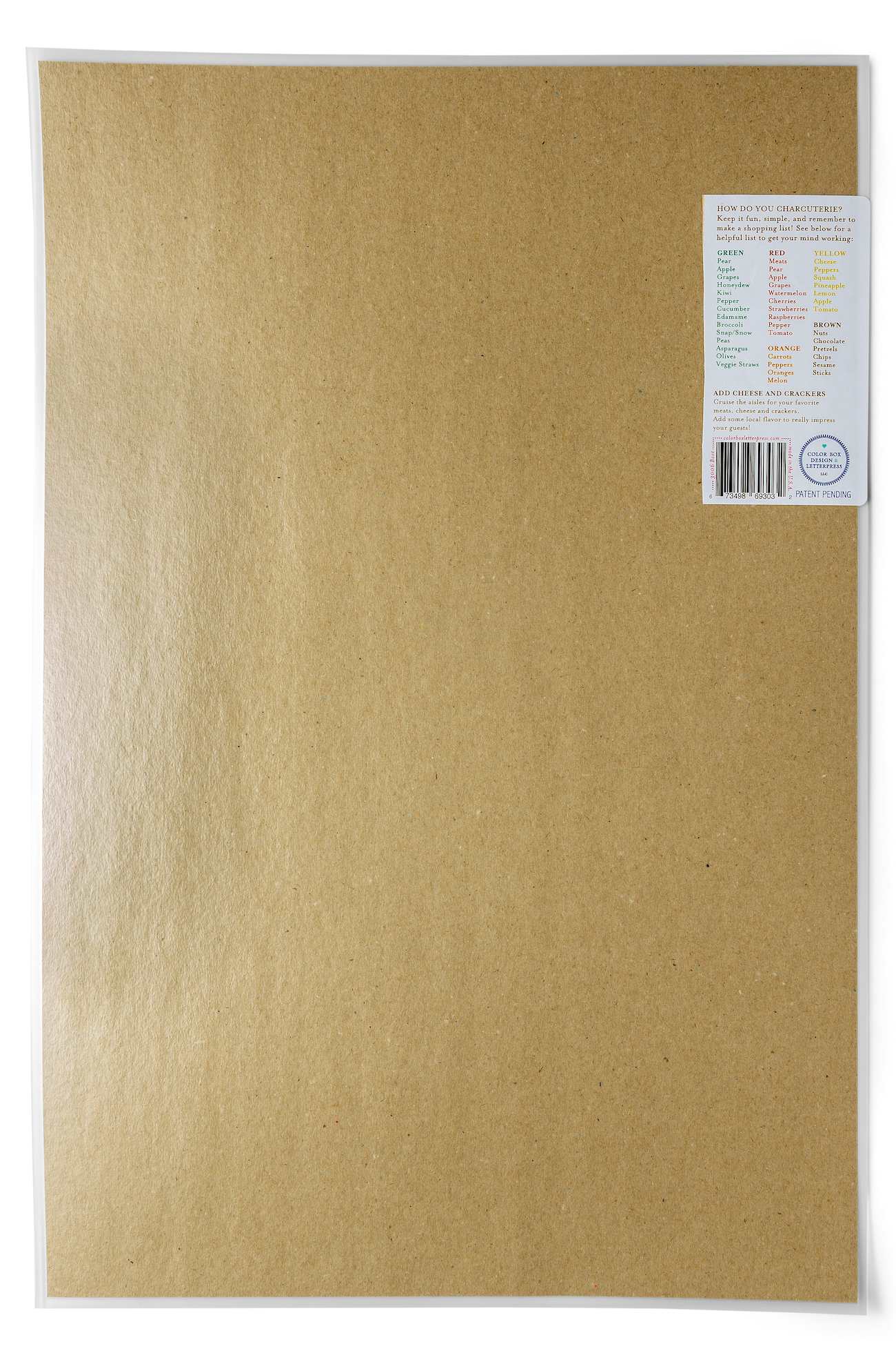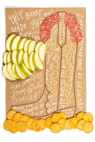 Our best-selling Charcuterie Cheat Sheets are the perfect guide designed to revolutionize your charcuterie board game, whether you're celebrating a graduation, hosting a holiday gathering, cheering on game day, or simply enjoying everyday snacking! Whether you're a seasoned entertainer or a novice host, our Charcuterie Cheat Sheets makes it easy to elevate your charcuterie game and create a lasting impression at your next special occasion or party. Simply follow the guide, mix and match your favorite cheeses, meats, fruits, nuts, and accompaniments, and watch as your charcuterie masterpiece comes to life! Simply wipe with a damp cloth and your Cheat Sheet is ready to use again and again. Details: - 12”x18” - Food-safe laminated sheet - Packaged in a sealed cello sleeve with color coded shopping list on back of label