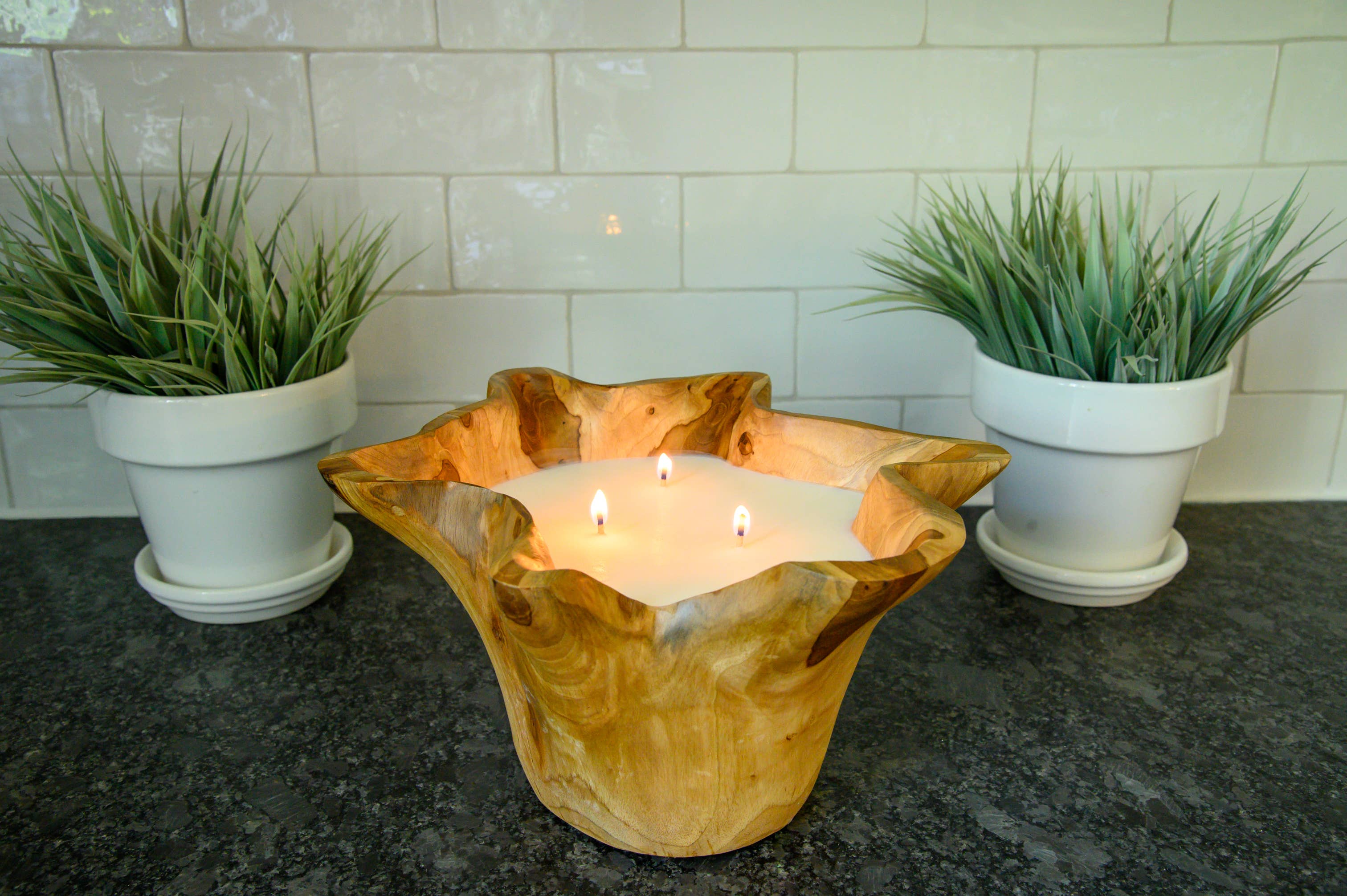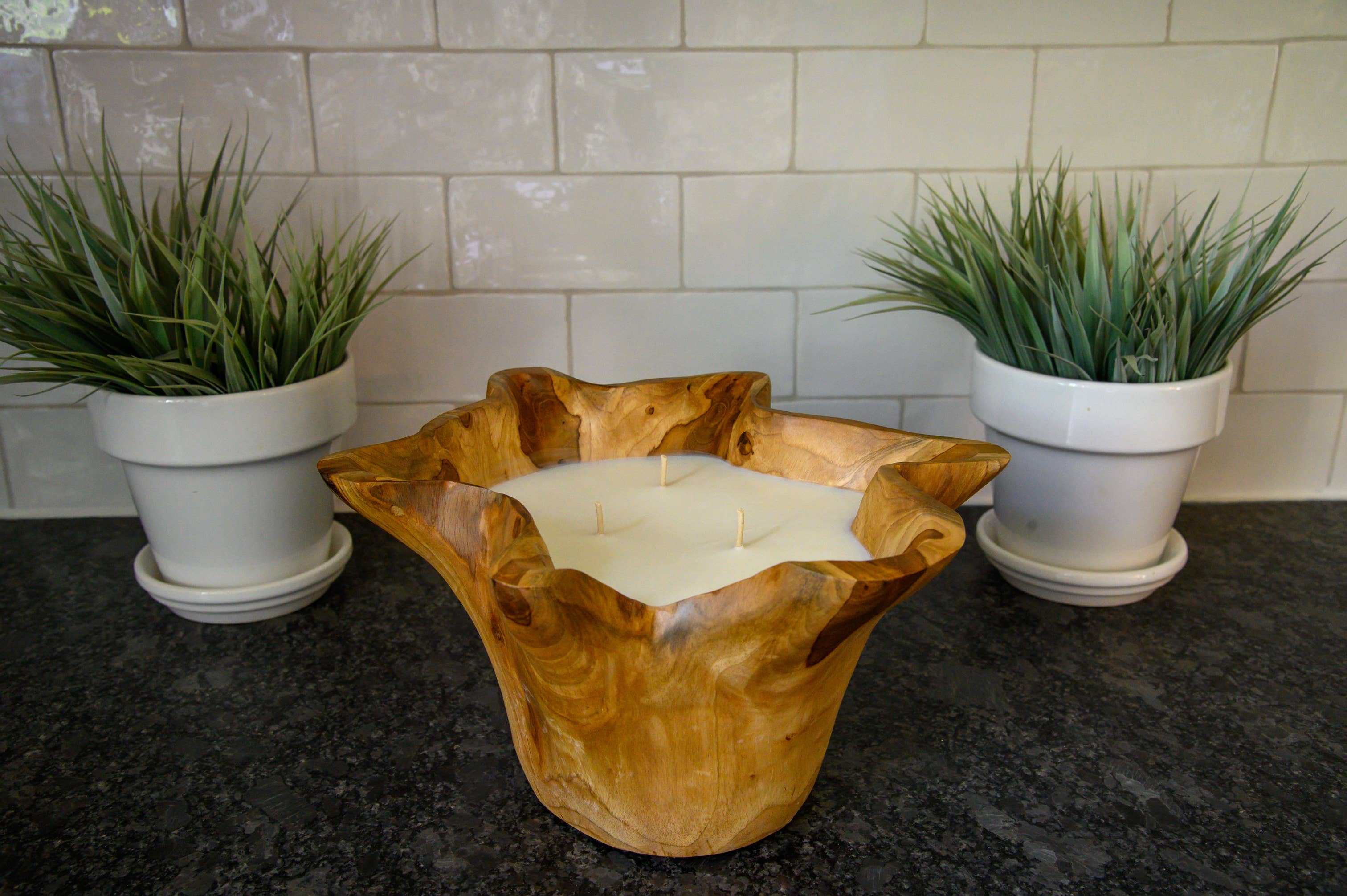 Introducing our Chic Teak candle, the perfect addition to your home decor. This candle is handcrafted with organic teak root wood, resulting in a slightly different look due to the natural root structures, making each candle truly unique. Made with coconut soy wax and featuring 3 wicks, this 34oz candle offers a long-lasting burn time and a delightful, ambient glow. Embrace the warmth and natural beauty of teak wood with our Chic Teak candle, perfect for creating a cozy atmosphere in any space. Whether for yourself or as a gift, this stunning candle is sure to impress.