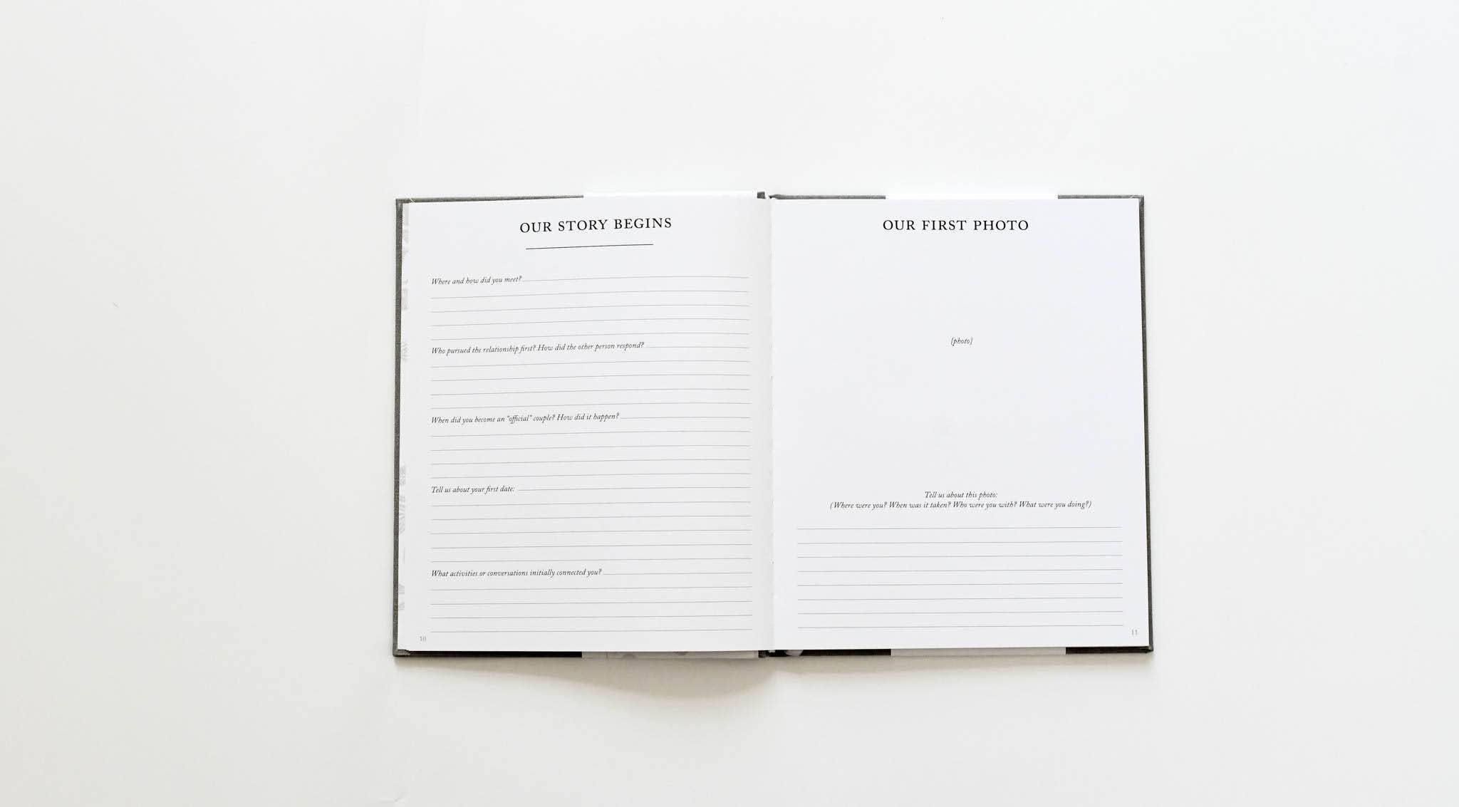 - Questions for Her/Him: Prompted questions that help you share what you love about your fiancé and why you want to marry them.
