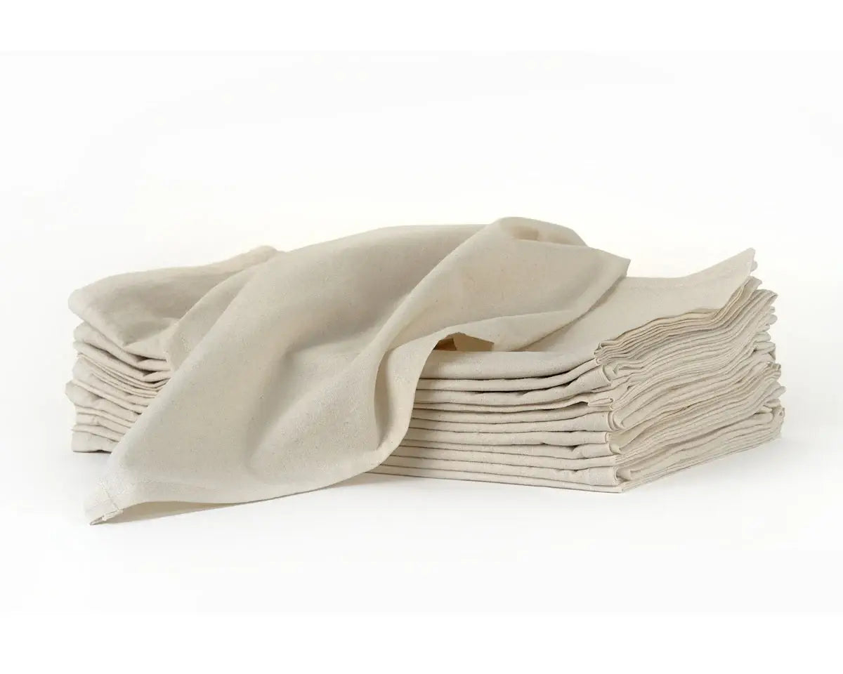 * A uniform 19" x 19" square, 130 thread count, flour sack napkins hemmed on all sides