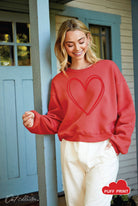 HEART PUFF Mid length Graphic Fleece Pullover Relaxed Fit.