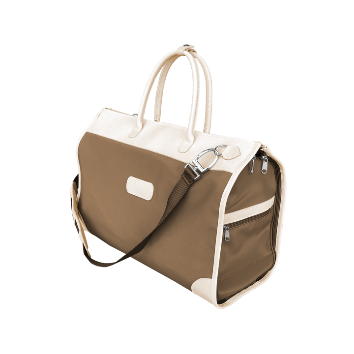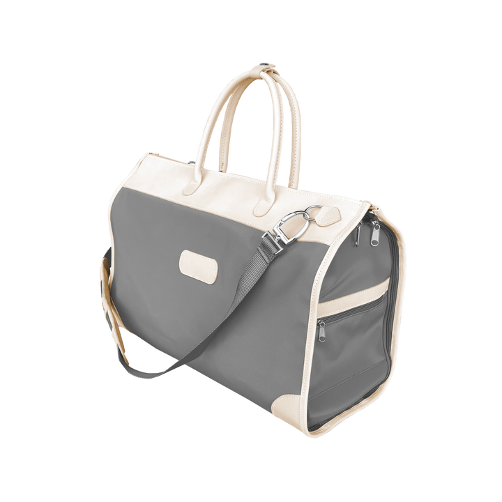 Our must-have for travelers, this stylish carry-on compliant duffel bag fully unzips to convert into a hanging garment bag. Includes rolled leather handles, as well as an adjustable shoulder strap for comfort carry. Zippered exterior pockets on both ends & elastic interior pockets for shoes, socks, or undergarments. The zippered exterior pockets on the back of the bag double as a trolley sleeve. Comfortably fits up to 5 hanging garments in the garment sleeve. Comes with a removable hook for easy storing over any door. An elegant duffel bag when you need to carry it, a garment bag when you need to hang it, and folds completely flat when you need to stow it, the Southtown has plenty of room for all of your weekend essentials.