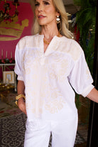 JW PUFF SLEEVE HENLEY BLOUSE-DAHLIA STRIP