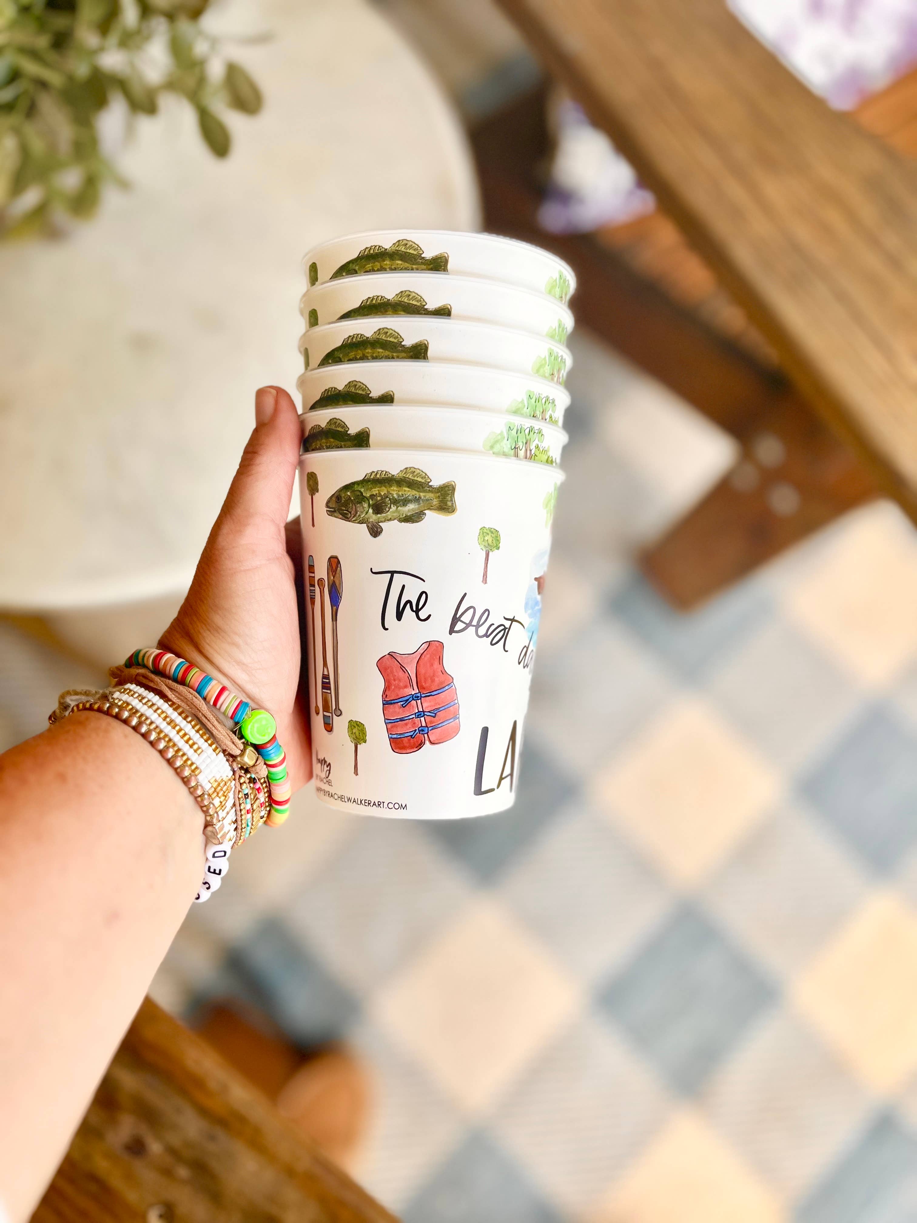 The perfect drinking cup for your Lake Days! Drink from the cutest cups around! Collect these as memorabilia and use them for years to come. Reusable and packaged as a set of 6 stadium cups! Makes the perfect drinking cup! Dishwasher safe. Designed by Rachel Walker.