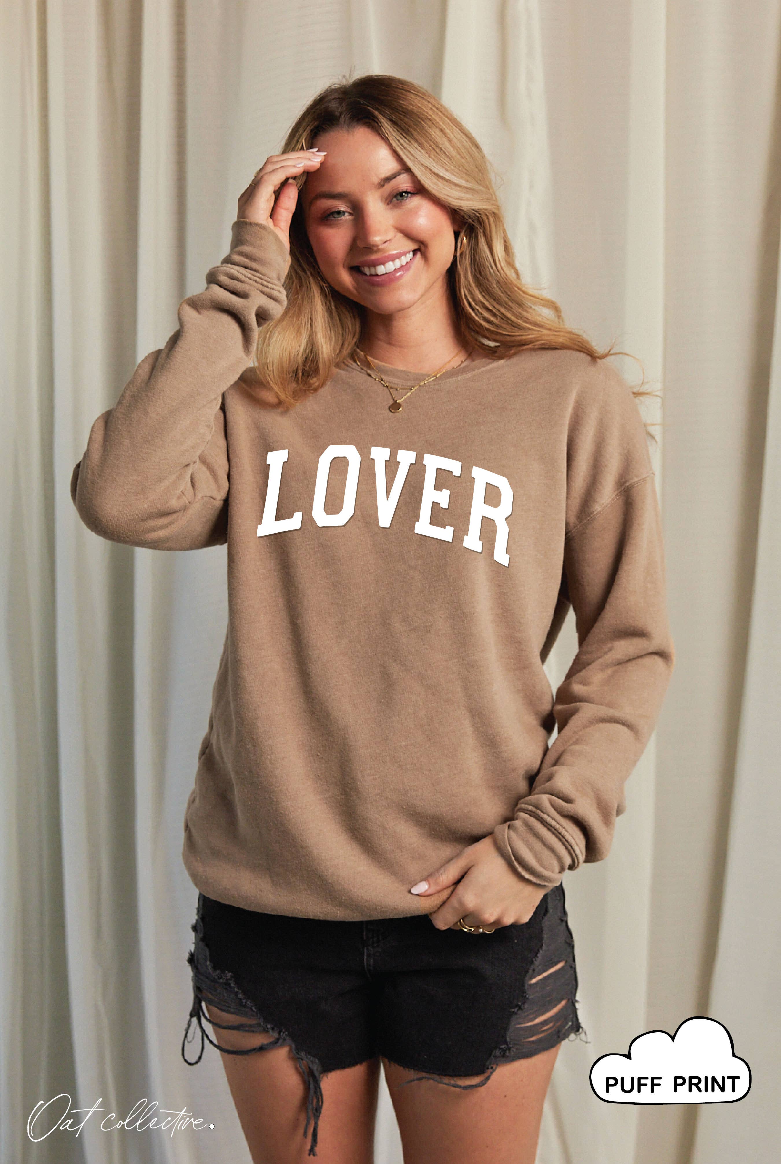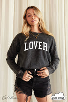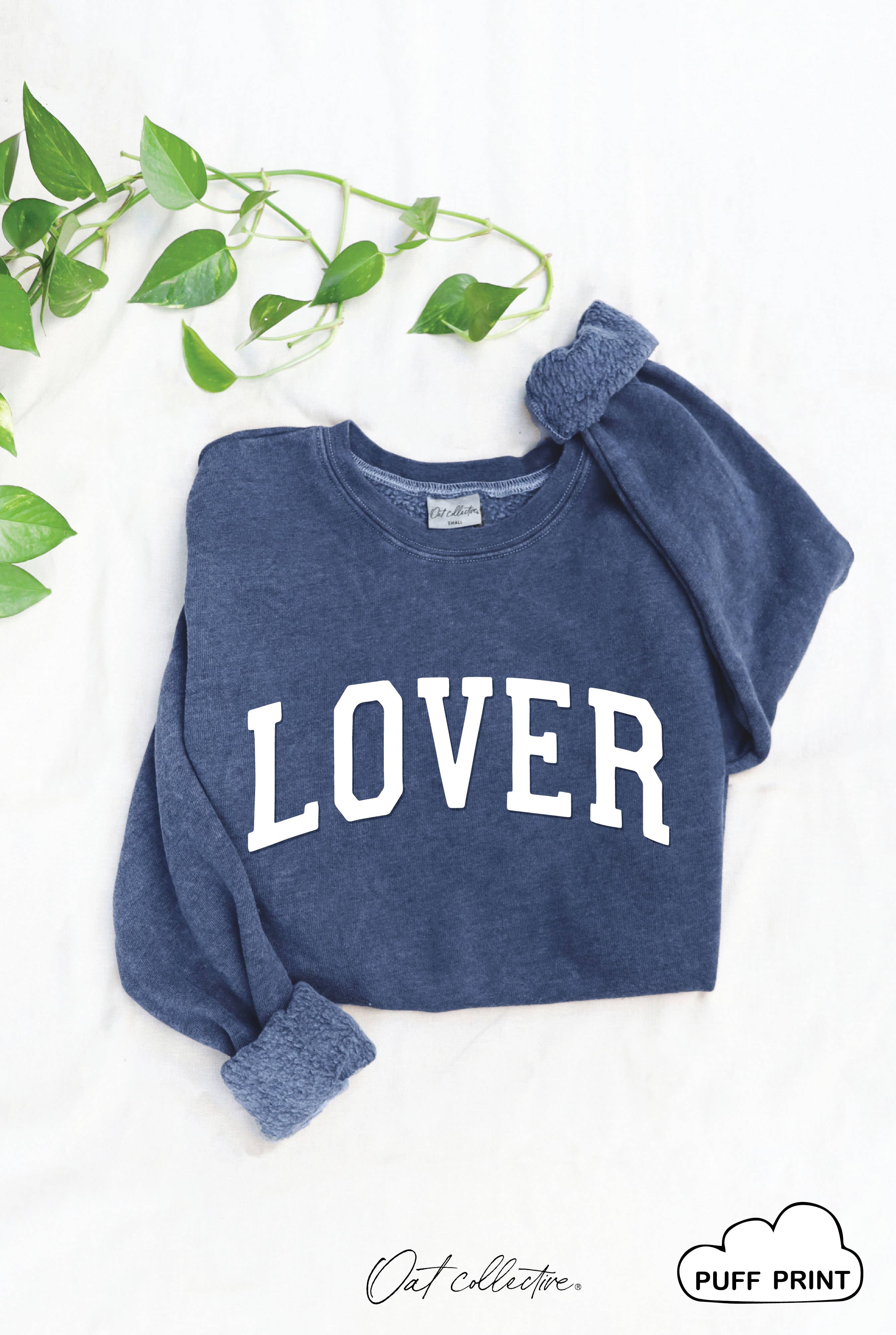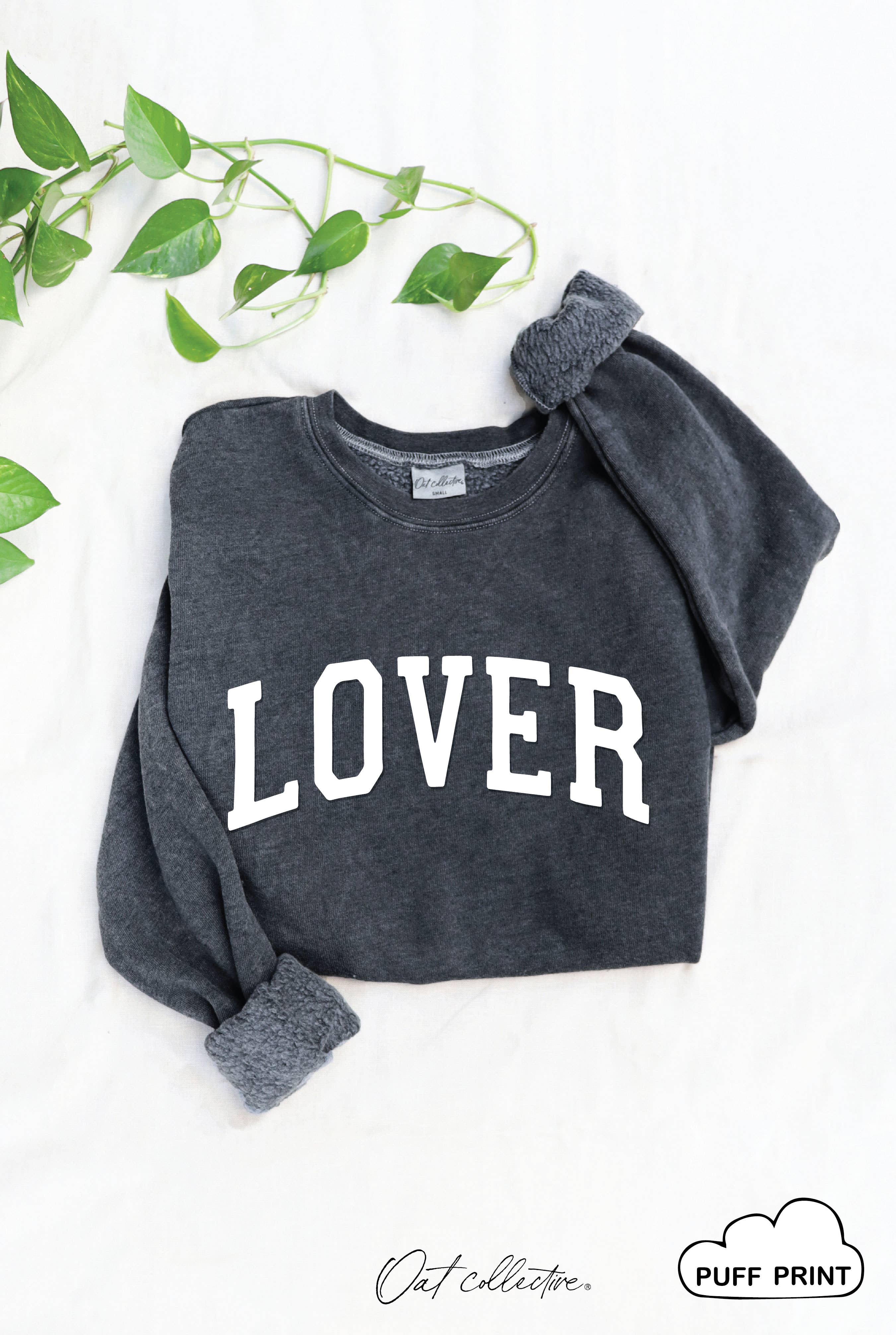 LOVER PUFF Mineral Washed Graphic Sweatshirt Unisex Fleece Pullover Relaxed Fit.
