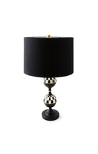 Metal lamp body with checked base. Bone and horn inlay spheres. 3-way rotary switch. Pieces may vary due to the handmade nature of each product. Imported.