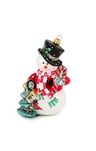 MC CHECK IT OUT SNOWMAN GLASS ORNAMENT