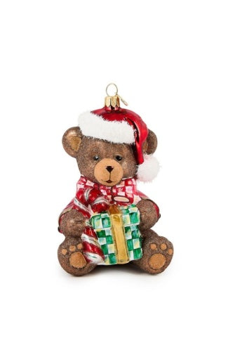 MC CHECK IT OUT TEDDY BEAR GLASS ORNAMENT