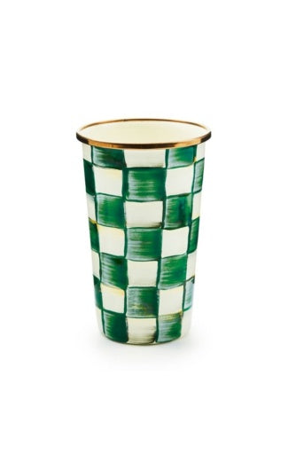 Heavy-gauge, hand-glazed steel underbody with hand-painted Emerald Checks, rimmed in bronzed stainless steel. Pieces may vary due to the handmade nature of each product. Imported.