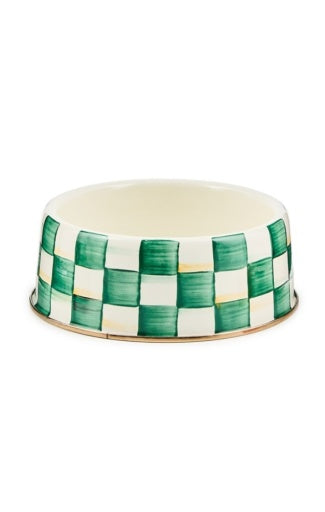 Heavy-gauge, hand-glazed steel underbody with hand-painted Emerald Checks, rimmed in bronzed stainless steel. Pieces may vary due to the handmade nature of each product. Imported.
