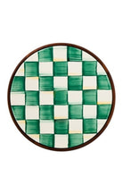 Acacia wood base with hand-glazed and hand-painted Emerald Check plate. Pieces may vary due to the handmade nature of each product. Imported.