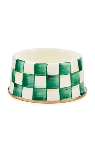 Heavy-gauge, hand-glazed steel underbody with hand-painted Emerald Checks, rimmed in bronzed stainless steel. Pieces may vary due to the handmade nature of each product. Imported.